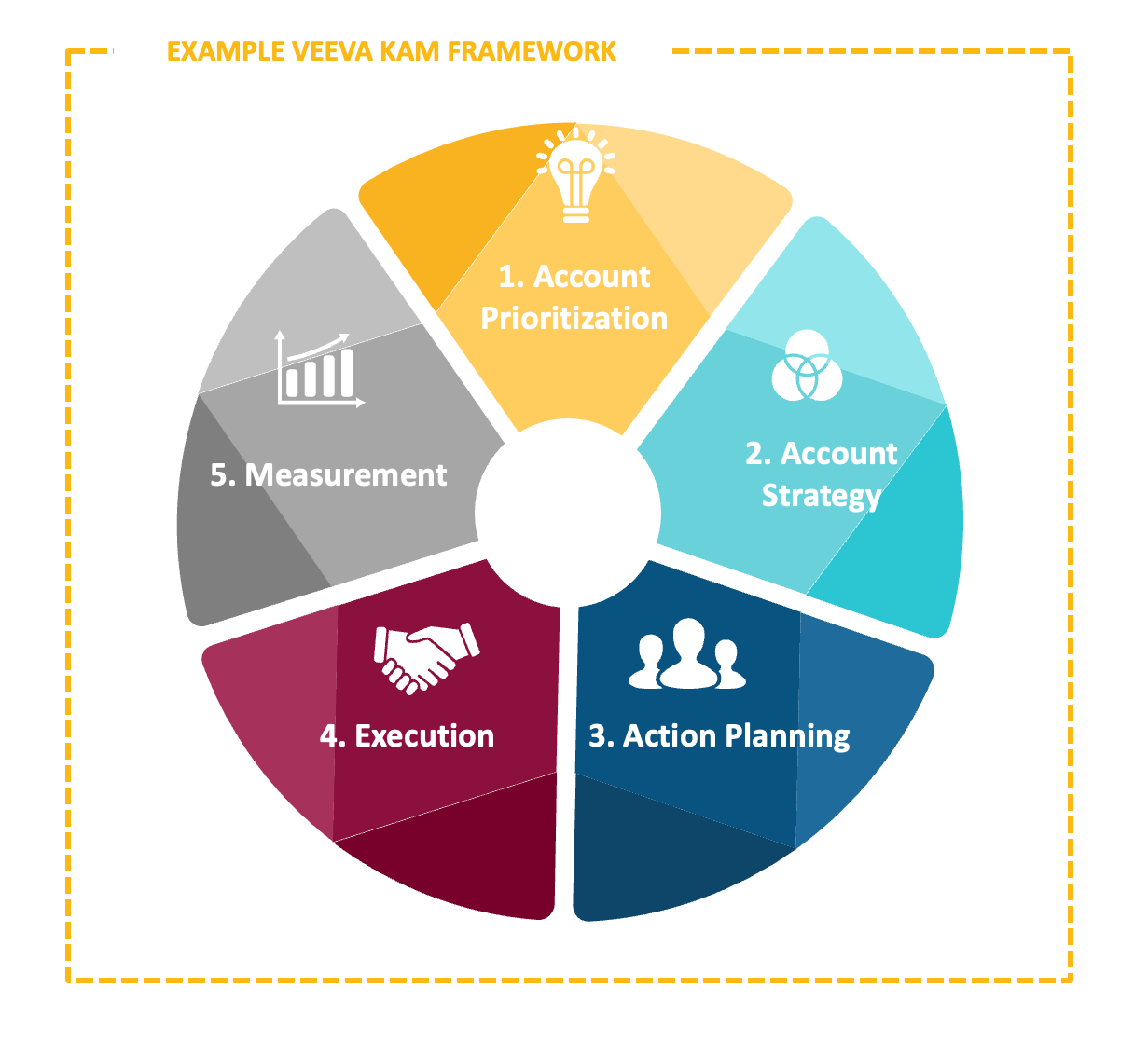 The outcomes above are only possible with the right enablers, such as effective KPIs, cross-collaboration, and strong governance, in place. To get there, Veeva uses a clear framework for high performing KAMs. The framework includes five key elements: