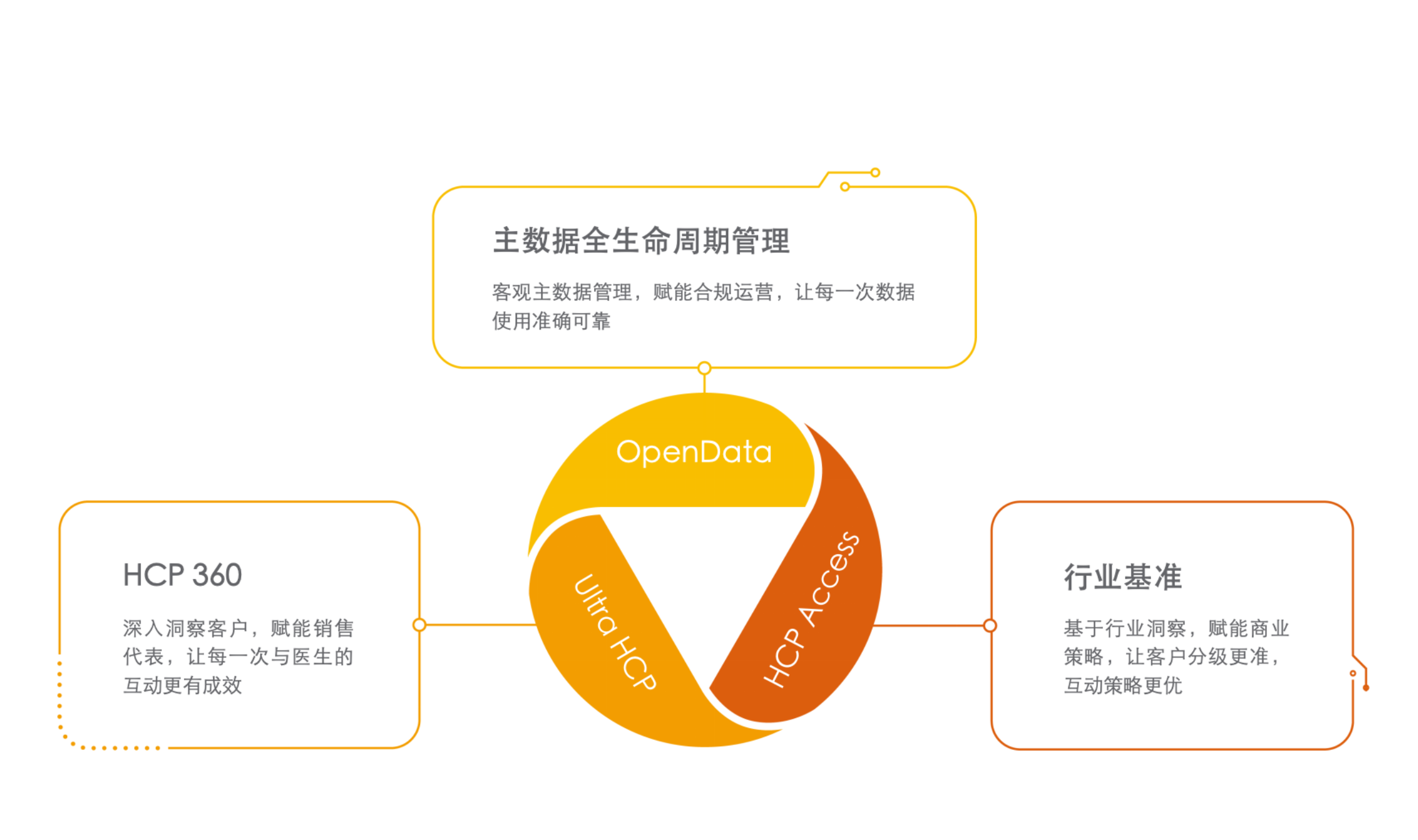 Veeva Data Cloud 通过整合高质量的主数据管理(OpenData)、多维度的客户画像(Ultra HCP)以及行业基准分析(HCP Access),为医药企业构建了一个全景式的数字底座;它实现了从数据准确可靠到商业洞察深刻的价值闭环,旨在提升企业全渠道营销的精准度与资源配置效率,支持制药企业在复杂市场环境下基于“真值”驱动商业卓越与数字化转型。