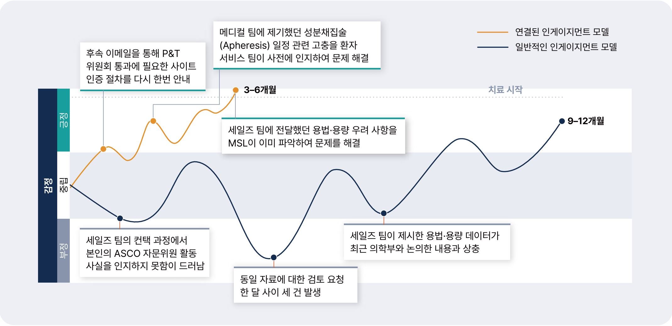 치료제 출시 전 필드에서 진행하는 메디컬 교육은 치료제 도입률을 50%나 향상시킵니다. 이는 메디컬과 커머셜 팀이 협력하여 필요한 순간에 데이터와 컨텐츠를 적절히 전달했을 때, HCP과 환자가 얻는 이득이 얼마나 큰지 잘 보여주는 사례입니다.