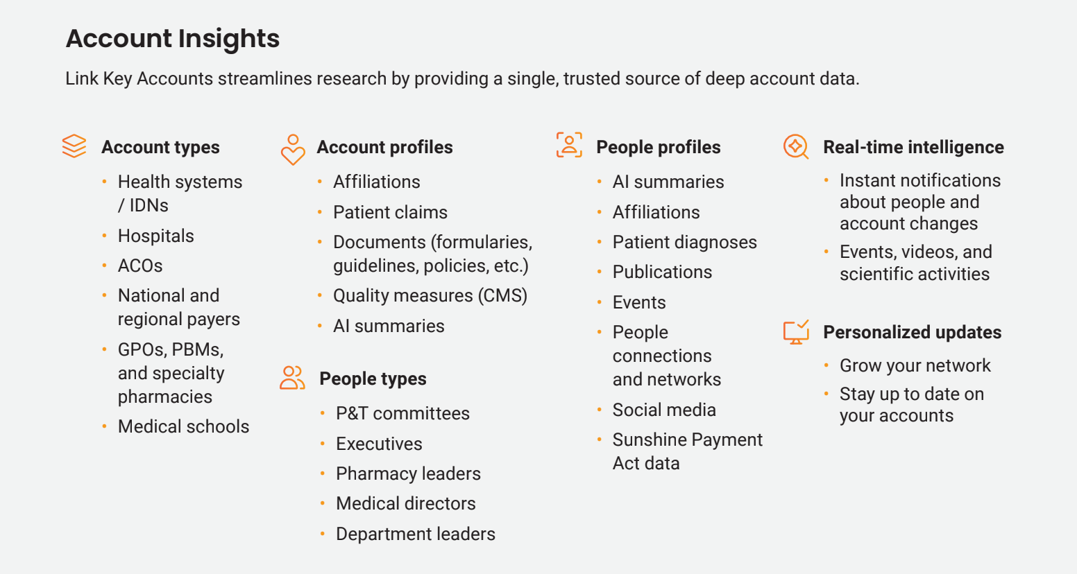Link Key Accounts streamlines research by providing a single, trusted source of deep account data.